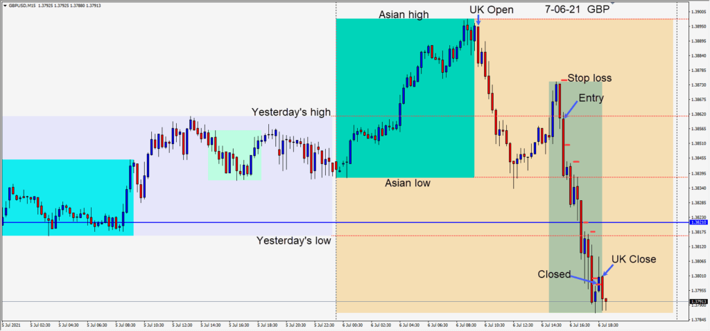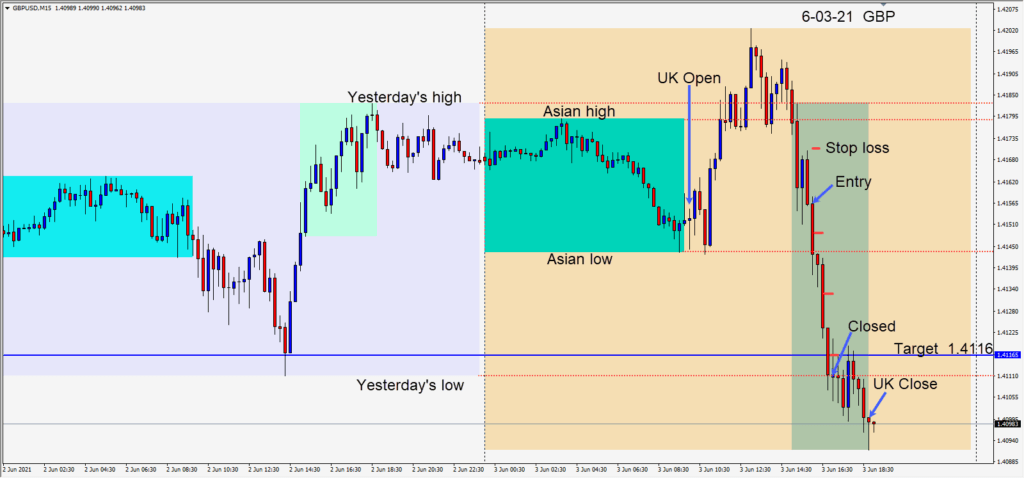 A strong USD versus the majors today and a GBPUSD short was taken.