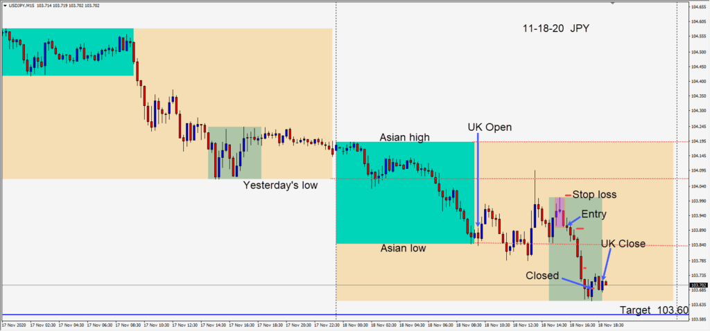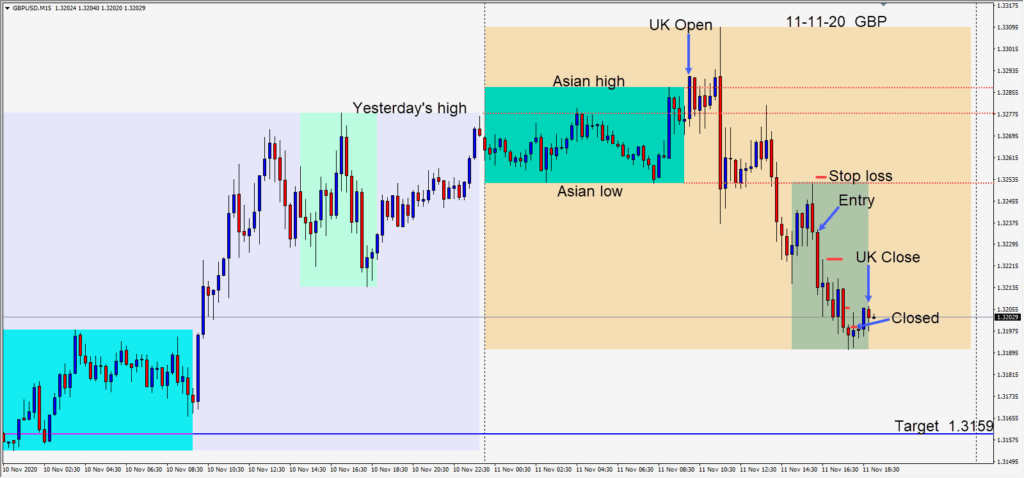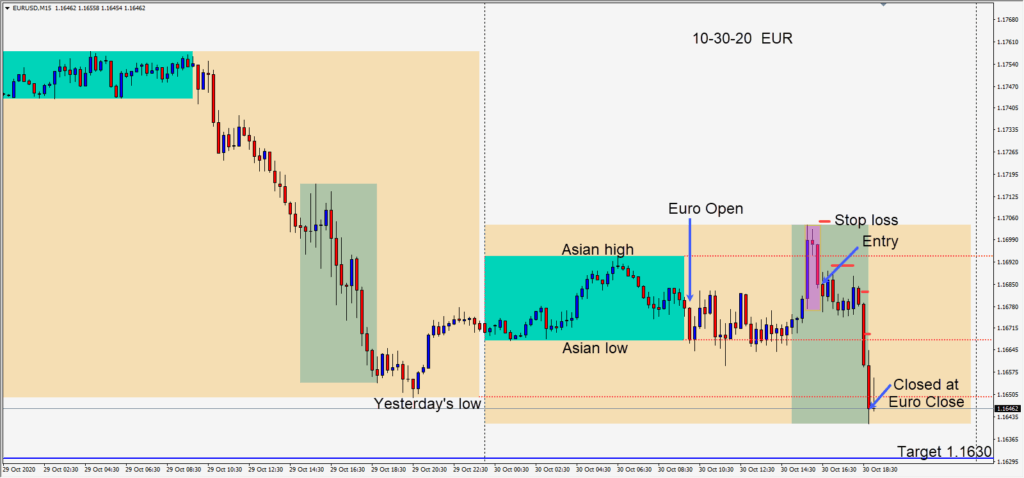 Today’s trading turned out to be more subdued than I had expected. Today is month end and the Friday before the U.S. election. The USD had a good week while U.S. equities dropped. A EURUSD short was taken today as priced failed to stay above its Asian...