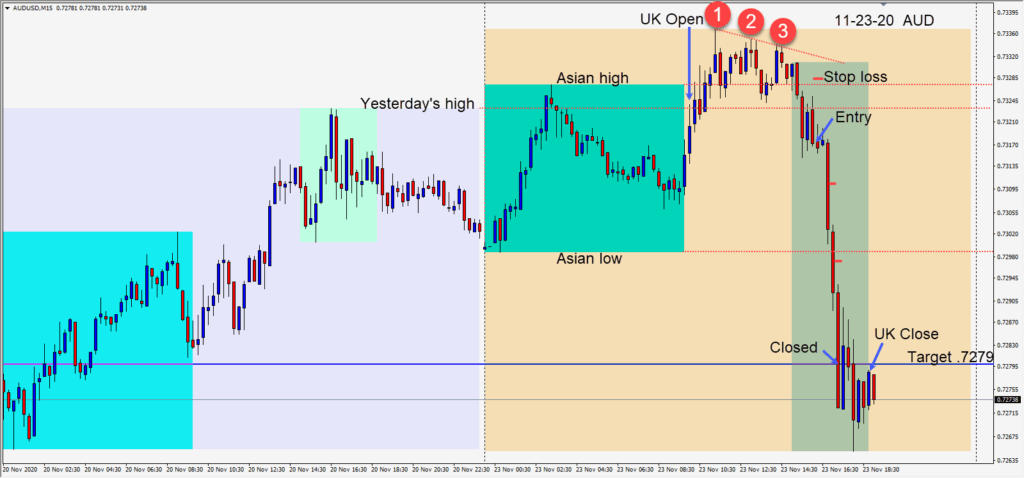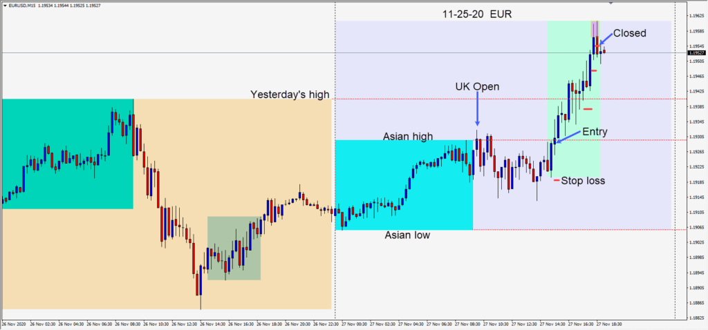 Shorting the EURUSD after it failed to stay above its Asian session high