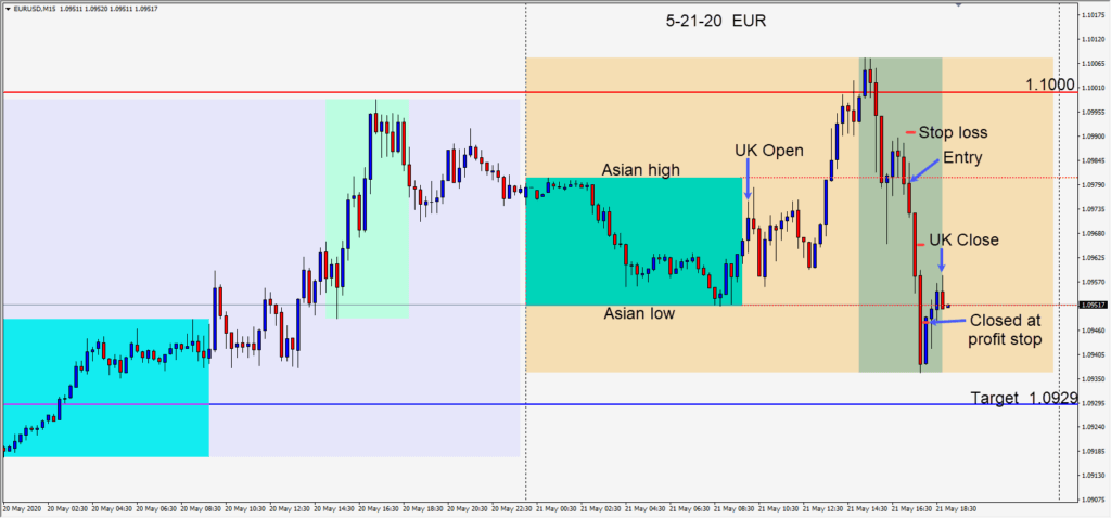 The elusive close above the 1.1000 – 1.1020 level didn’t happen and sellers emerged today as the EURUSD tested the 1.1000 figure. Global bourses were lower today and the USD was moderately up…accompanied by the move lower in gold. A short setup was found...