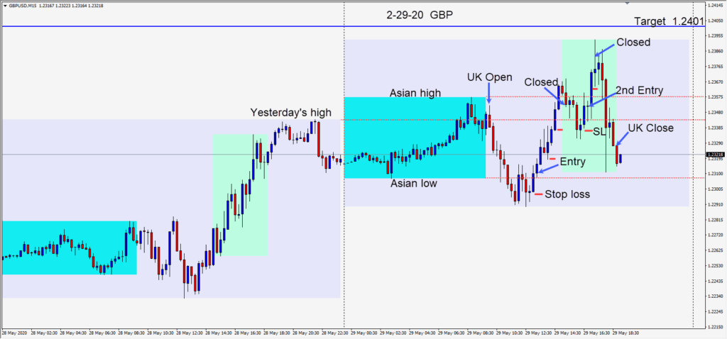 Today was another day of USD weakness and it’s never wise to fight the market. Today a long was taken in the GBPUSD as it began to climb off its session lows – risking 19 pips for a potential 85 pips to our daily target at 1.2401. Price moved higher but...