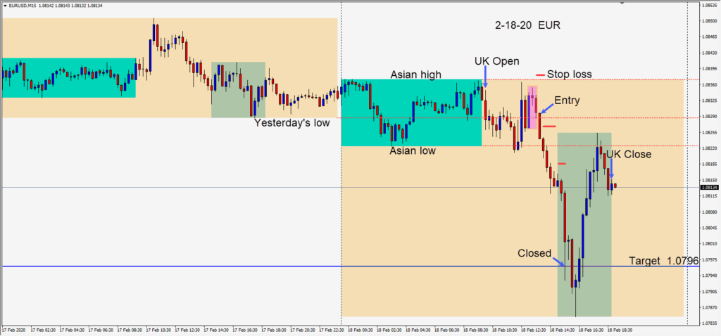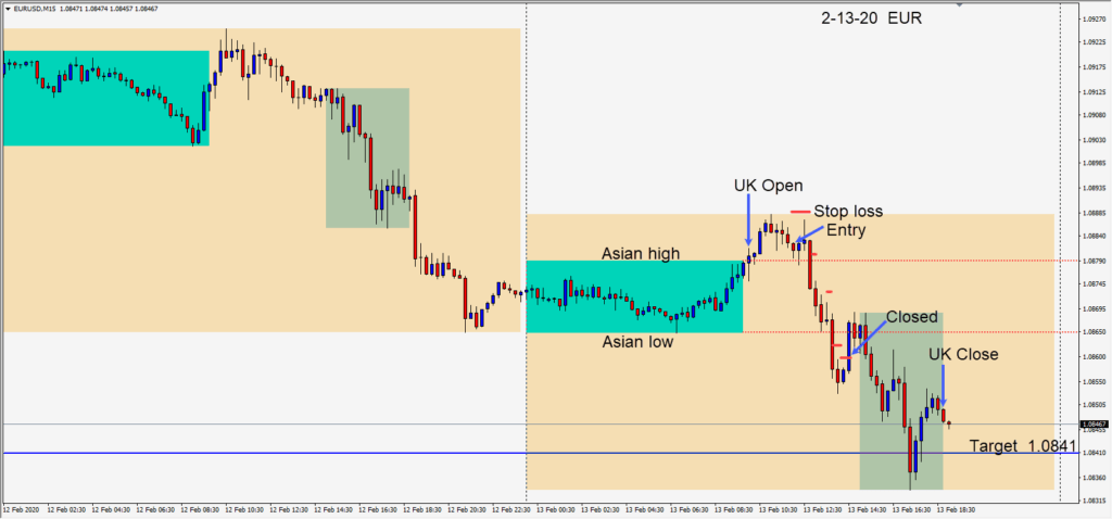 The EURUSD moved up briefly as the U.K. session got underway. The idea today was to wait for it to roll over and trade with the trend lower. We entered short with a stop loss of 7 pips for a potential 41 pips to our daily target at 1.0841. Speculation of...