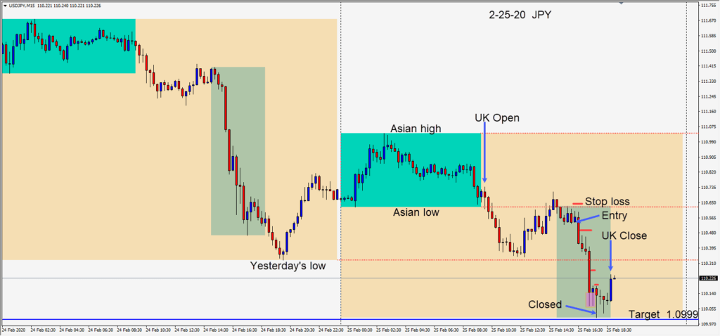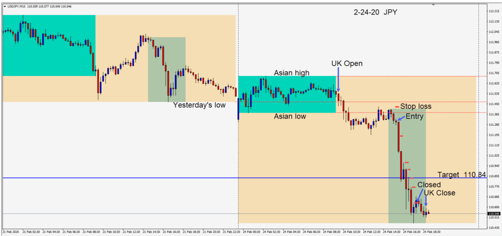 Shorting the USDJPY again today as risk off sentiment continues