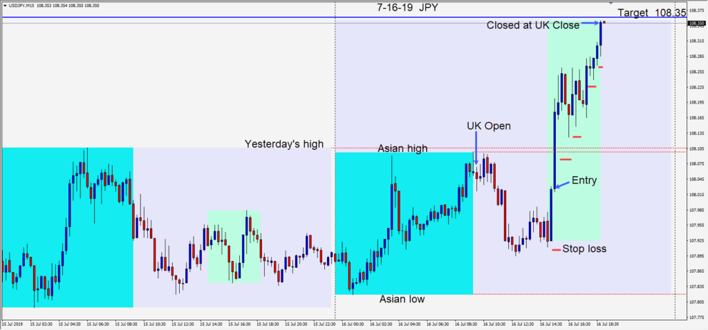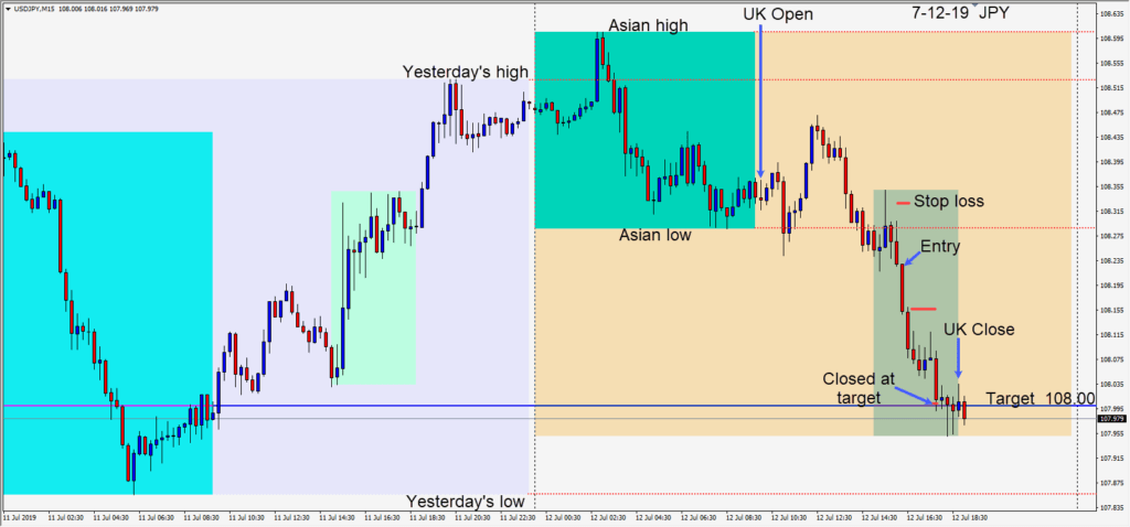 As we approached the retail sales release today, the USDJPY moved up just in advance – as if the market knew the number would be favourable. Risking 12 pips for a potential 34 pips to our daily target at 108.36 we went long too. Price jumped higher, traded...