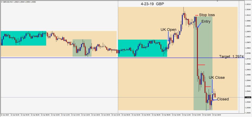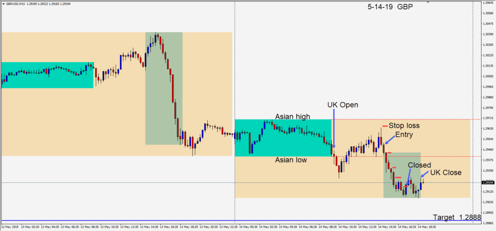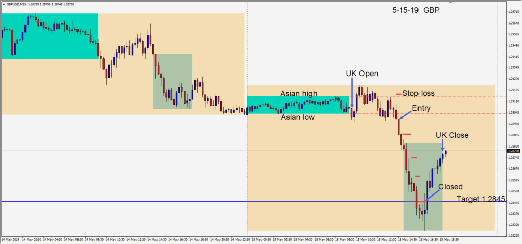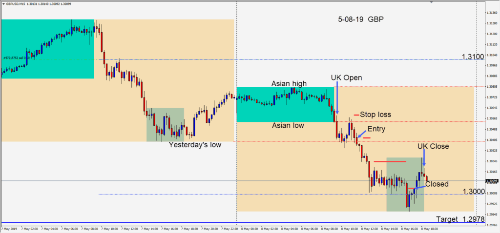 Shorting the GBPUSD after it failed to take out its Asian session high and began to move lower.