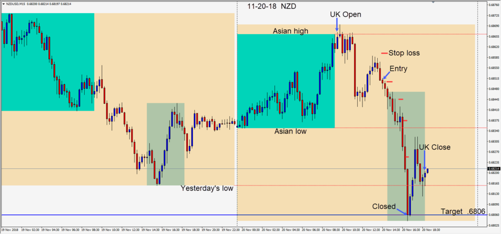 Although the equity markets worldwide continued lower today, the USD was strong and gold was on its back foot. With a uniform move of strength for the USD versus the majors, it was not difficult to find trade setups. Risking 10 pips for a potential 44 pips...