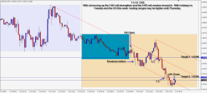 The CAD pair weakens with the move up in Oil. The Canadian dollar strengthens on higher oil prices causing the US dollar to weaken in this pair. Tighter ranges this week until Thursday with the holidays in Canada yesterday and the US tomorrow.Questions are always...