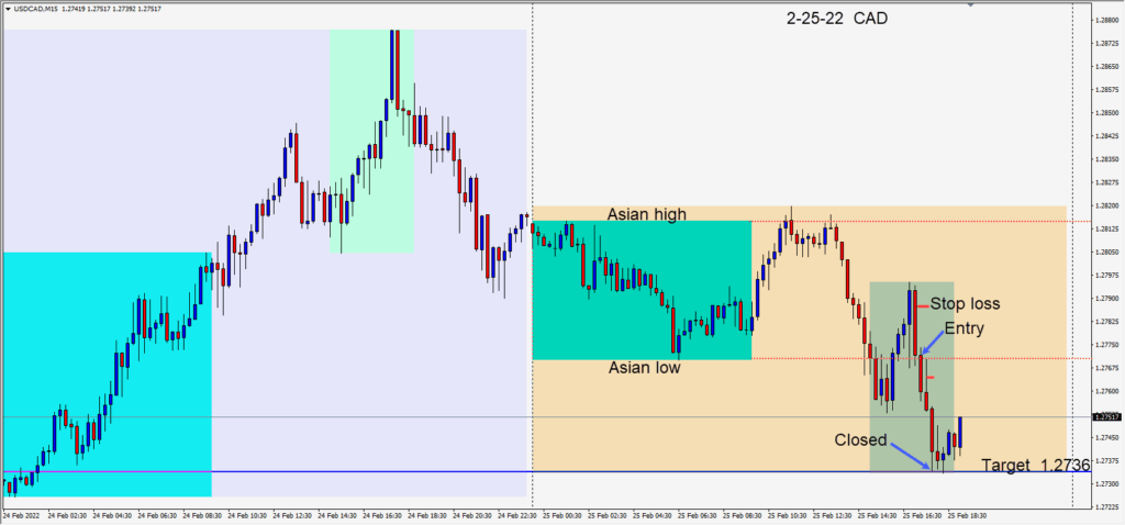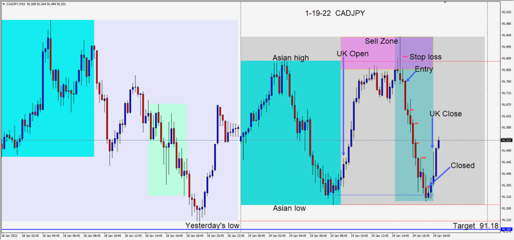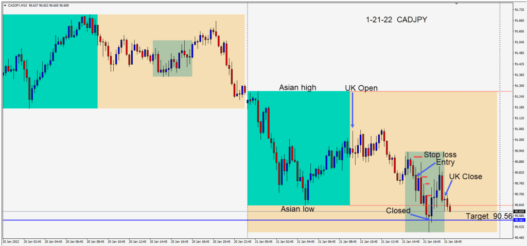 Shorting the CADJPY as “risk off” sentiment continued today