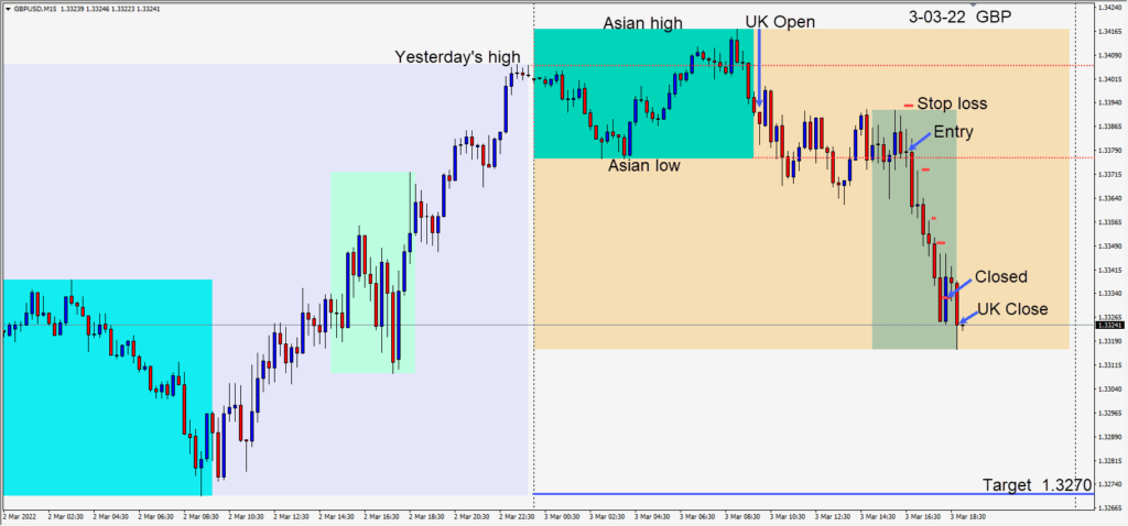A stronger USD today created a nice short opportunity in the GBPUSD