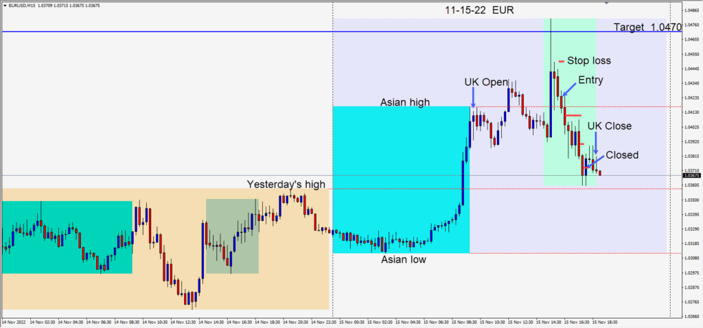 The GBPUSD oscillated in a tight range during the first half of the U.K. session. As it moved lower to its Asian session low early in the U.S. session overlap, an entry was taken risking 15 pips for a potential 107 pips to our daily target at 1.3270. Price moved...