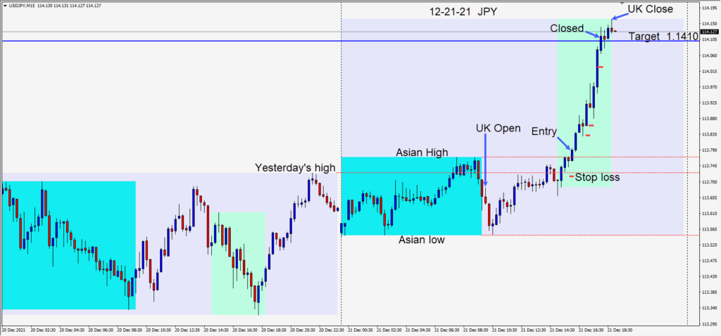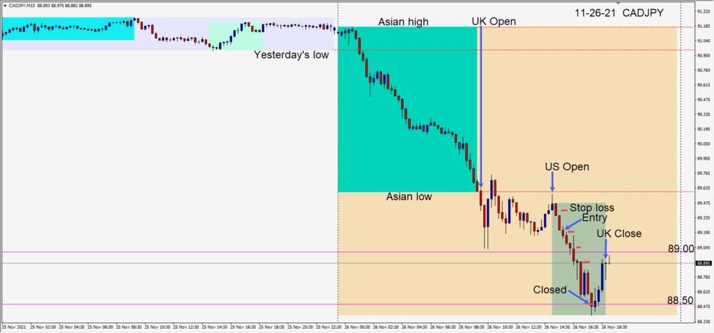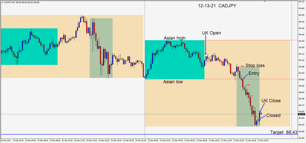 As the North American session got underway the JPY and USD were strong and the commodity currencies weak. The USDCAD and the CADJPY have been great pairs to trade this year. Today the USDCAD was too close to our daily target, but the CADJPY set up for an...