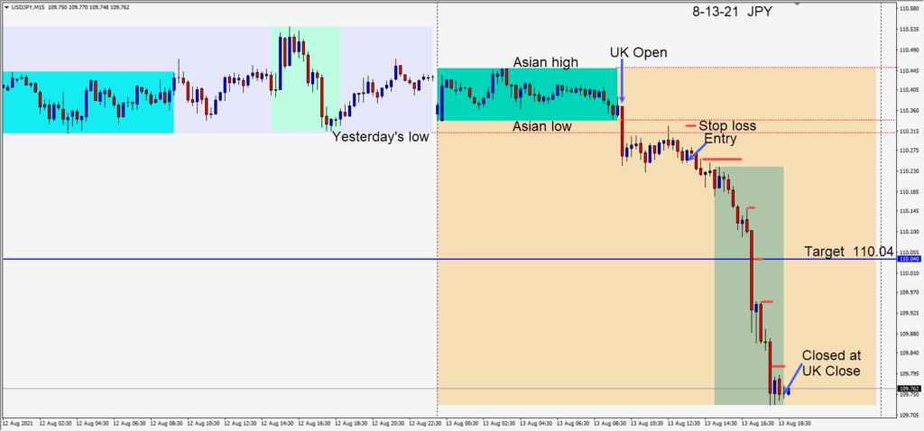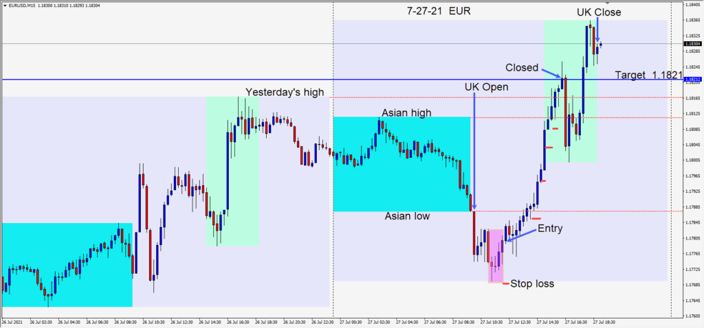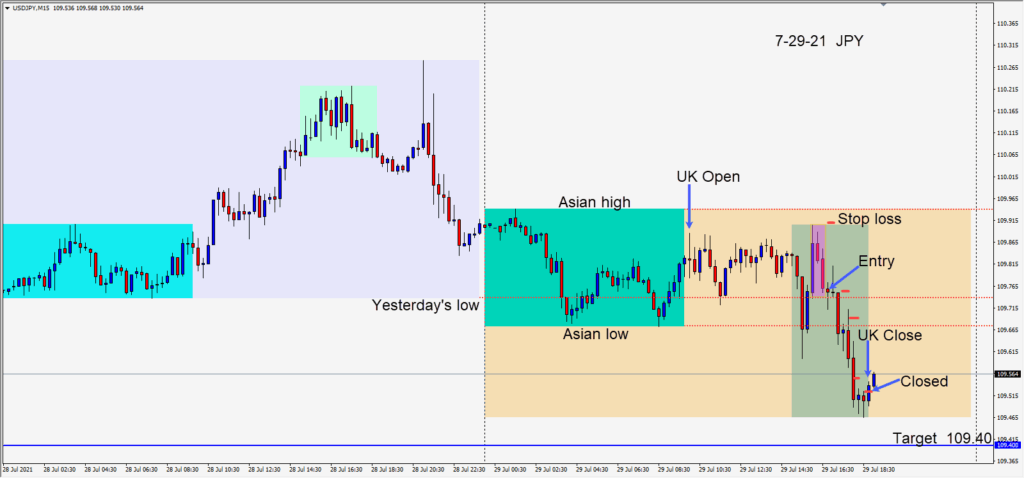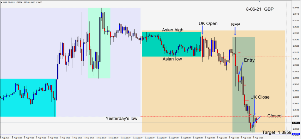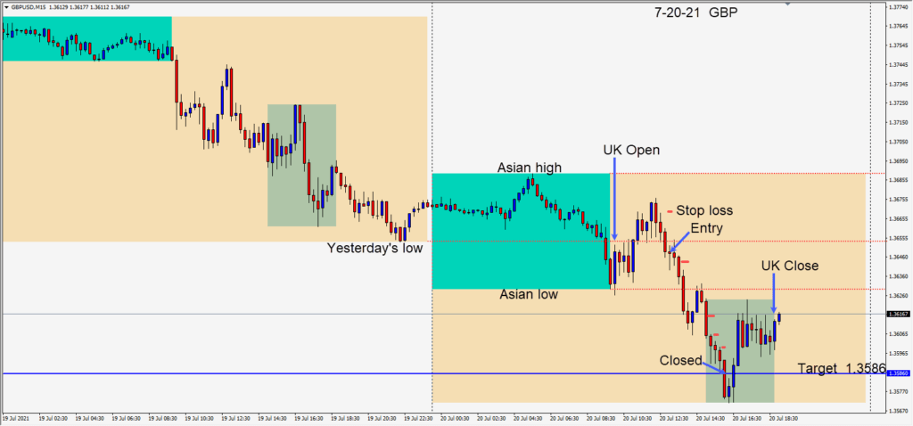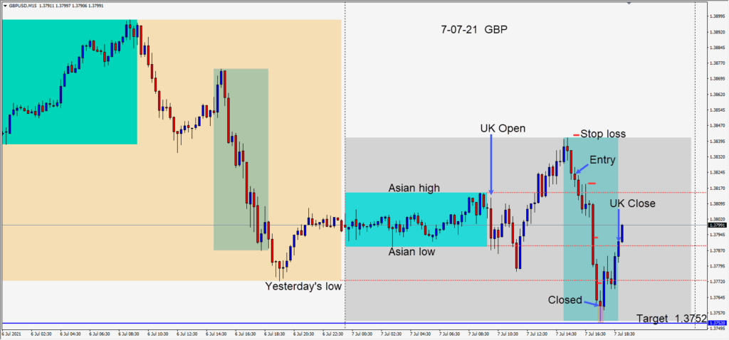 As the U.K. continues to lift covid related restrictions, the delta variant case numbers are increasing there and Prime Minister Johnson is reported to have entered into isolation protocol. Naturally this doesn’t bode well for the GBP. A short was taken...