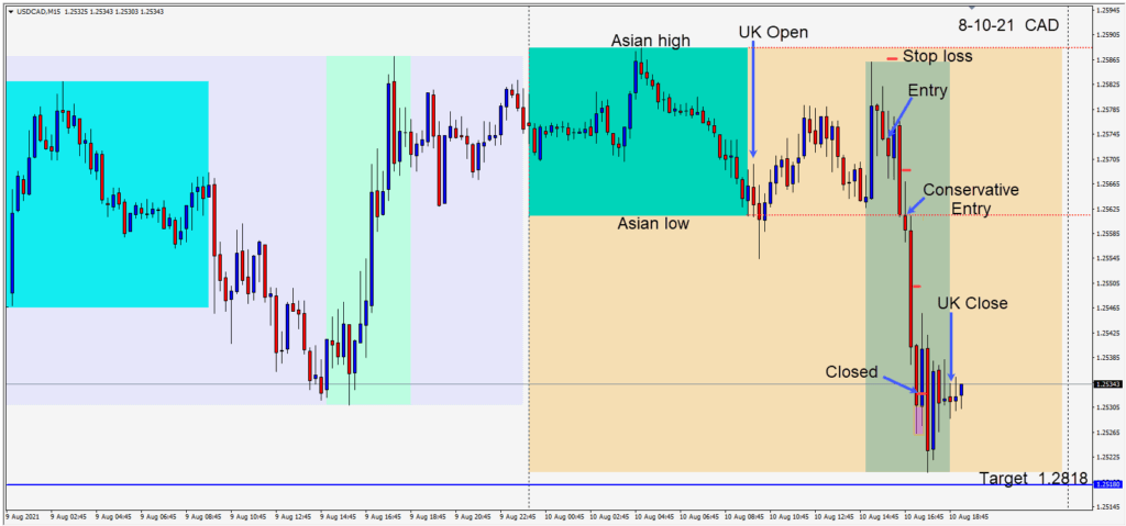 As the U.S. session got underway the USDCAD made an attempt to move higher but was unable to test its Asian session high or yesterday’s high. It began to fade and a short was taken risking 13 pips for a potential 55 pips to our daily target at 1.2518. Price moved...