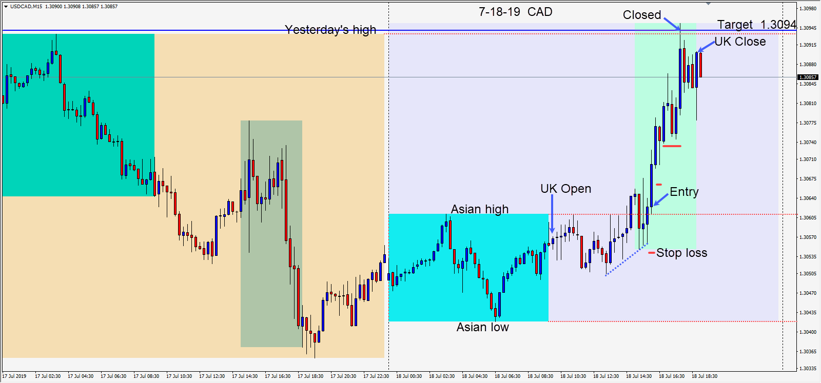 After price moved higher and formed what looked like a reversal pattern, we moved our take profit beneath its structure and fortunately price moved up to test yesterday’s high and the trade was closed at our daily target.