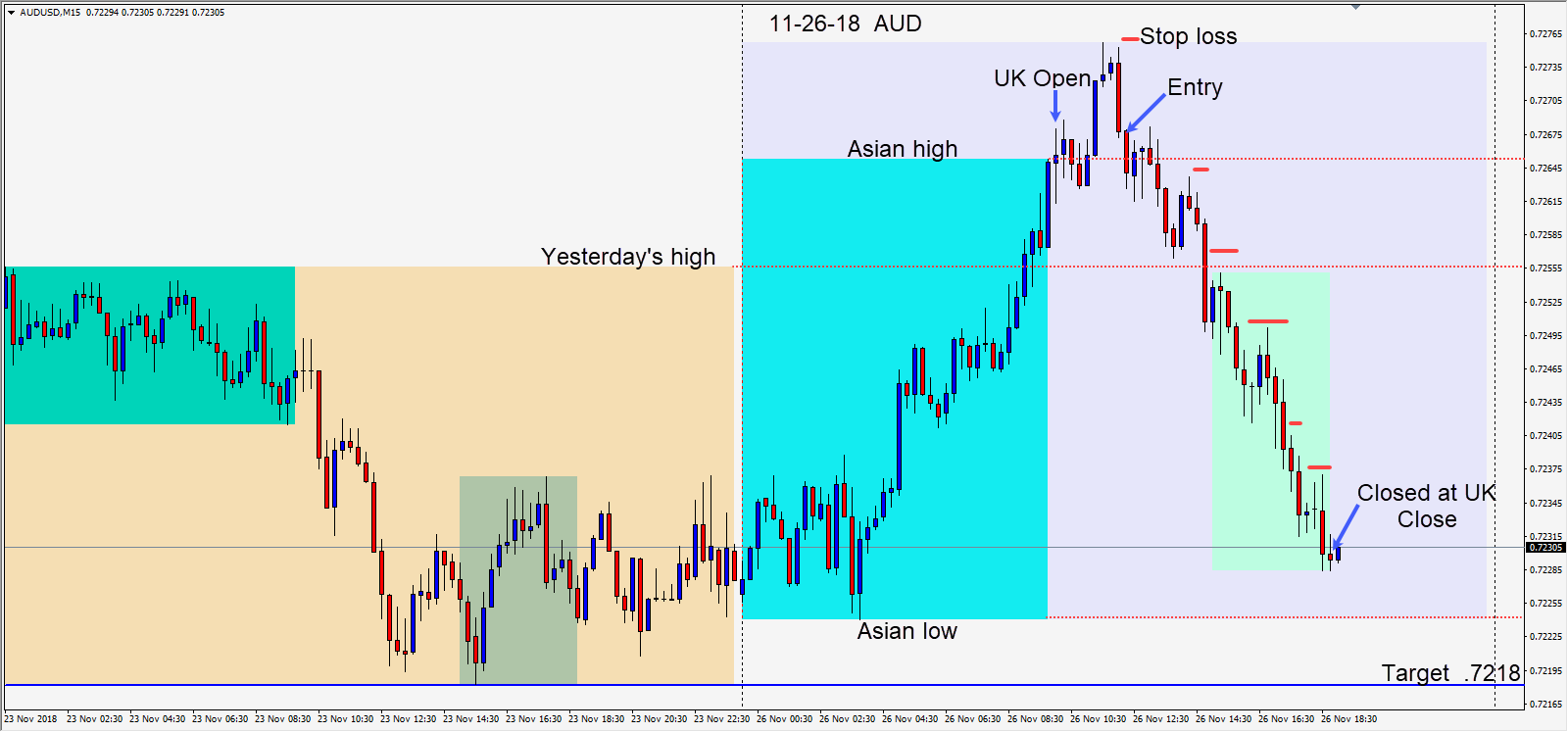 Price retraced its Asian session move in a stair step manner and we closed the trade at the London close.