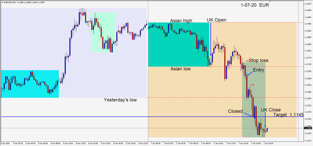 Price moved lower and our trade was closed at our daily target as the U.S. session got underway.